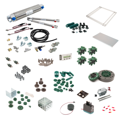 Ресурсный набор "Механика и Пневматика" рассчитан на увеличение функционала "Расширенного робототехнического набора". Включает в себя большое количество структурных элементов (сталь, алюминий), подшипники, Mecanum-колеса, двунаправленные пневмцилиндры, электрокомпоненты, в том числе гироскоп, LCD-дисплей, аудио-динамик, элементы передач и усиленные шестерни электромоторов, а так же многое другое для реализации инженерных проектов и успешной соревновательной деятельности.